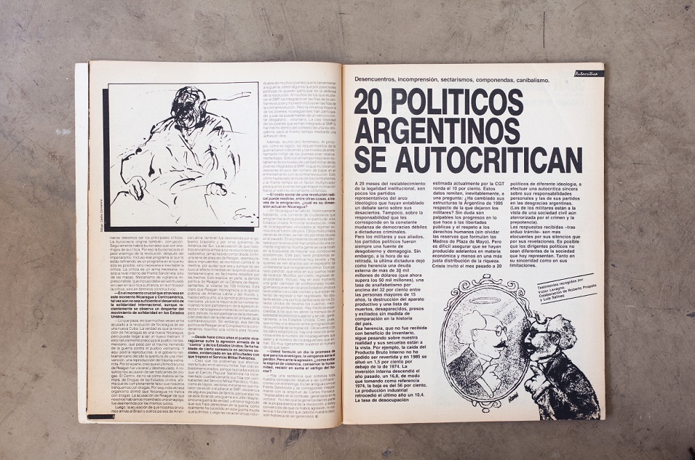 Habían pasado 29 meses de la vuelta de la democracia y en la revista crisis #42 hacían una producción especial. El restablecimiento de la legalidad institucional arrastraba de la dictadura una deuda externa titánica, un 32% de analfabetismo y la caída de un producto bruto interno que no podía ser remontada. ¿Qué había fallado? En medio de esa pantanosa situación socioeconómica y también política, desde la revista les consultaron a 20 políticos con la idea de hacer un ejercicio reflexivo de autocrítica y el resultado es el que aquí compartimos. Cualquier parecido con la actualidad no es pura coincidencia.