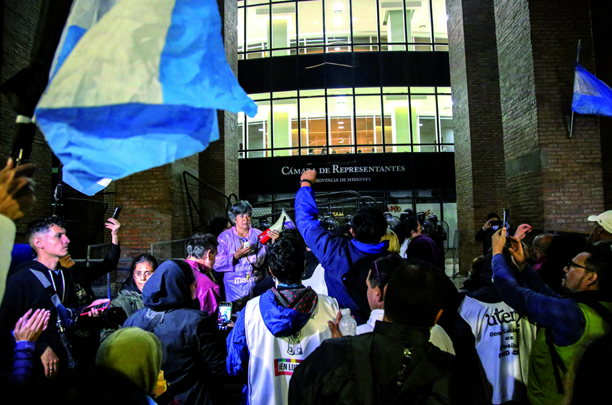 “Que se hagan responsables de la desidia en la que vive el pueblo misionero. Nosotros vamos a aguantar hasta las últimas consecuencias”, llegó a bramar, megáfono en mano, en medio de una ovación, el suboficial mayor retirado Ramón Amarilla, vocero no solo de la policía sino del acampe iniciado el viernes 17. Pero fueron los gremios docentes más combativos, nucleados en el Frente de Trabajadores de la Educación en Lucha, los que, con el correr de las semanas, se consolidaron como la voz cantante de los reclamos, con manifestaciones que se extendieron a cada rincón del territorio misionero. El sábado 25 una de ellas llegó incluso hasta las puertas de la mansión de CER, en el exclusivo barrio El Laurel, a la vera del río Paraná, un hecho que encendió las alarmas en las filas de la Renovación.