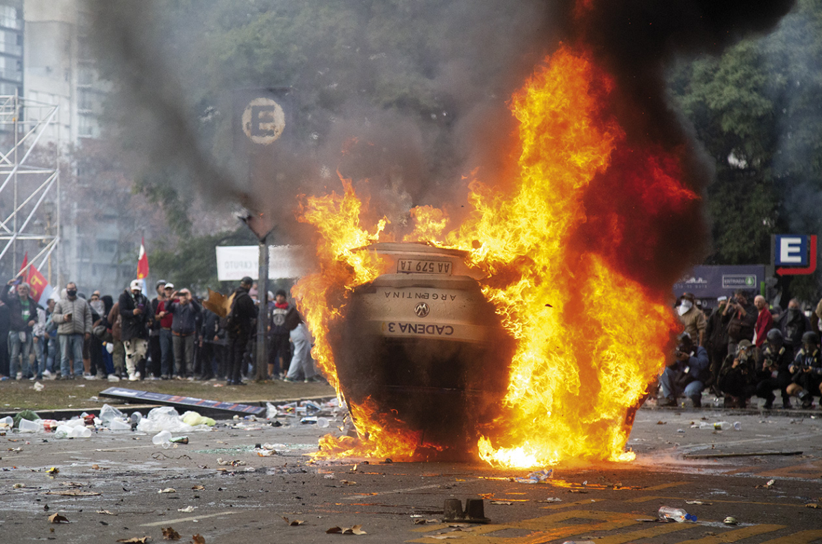 Por un lado, los gobiernos represores suelen autojustificar sus decisiones sin necesidad de mayores anclajes con hechos concretos. Alcanza con prestar atención a las circunstancias que rodearon las 33 detenciones del 12 de junio: en la mayoría de los casos esas personas no son responsables ni siquiera de una contravención. Por otro lado, no siempre la violencia militante ante los intentos represivos les resulta funcional a los gobiernos. Hay hechos históricos que, aun salvando las distancias de épocas y contextos, pueden servir para ejemplificar lo contrario. La sostenida violencia popular que protagonizaron las columnas sindicales y los estudiantes durante el Cordobazo, en 1969, puso en retirada nada menos que a una dictadura militar; durante diciembre de 2001, el desafío a la represión a fuerza de barricadas en los alrededores de la Plaza de Mayo provocó la huida en helicóptero de un presidente ajustador, inepto y represor y abrió las posibilidades de un ciclo político más atento a los intereses del pueblo de ahí en más; durante aquellos mismos días, la violencia en las protestas incluyó a ahorristas y sectores de la clase media que asumieron que no tenían otras formas de hacerse oír y de defender sus derechos; durante la resistencia de 2002 en el Puente Pueyrredón, la distancia que logró ponerse con la policía garantizó que menos personas fueran alcanzadas por los disparos; durante el gobierno de Mauricio Macri hubo movilizaciones que intentaron ser reprimidas pero la gente resistió (“14 toneladas de piedras”, denunció en su momento Patricia Bullrich) y así se logró debilitar al gobierno de derecha, que no pudo llevar a fondo su modelo antipopular.