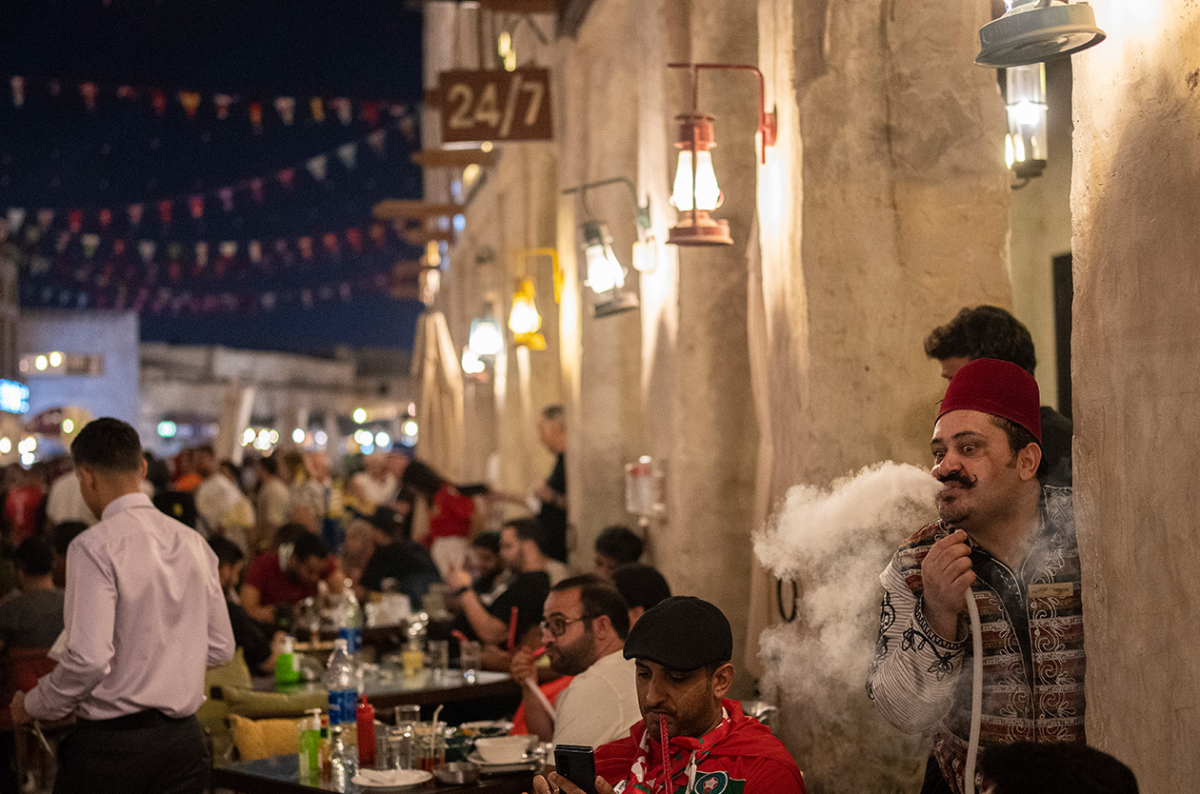 En Al Mansoura el Mundial existe porque la cafetería Chitchat pasa los partidos. Hay cuatro mesas que no siempre están llenas. Si no fuera por eso, uno pensaría que no está en el país de la primera copa del mundo árabe.