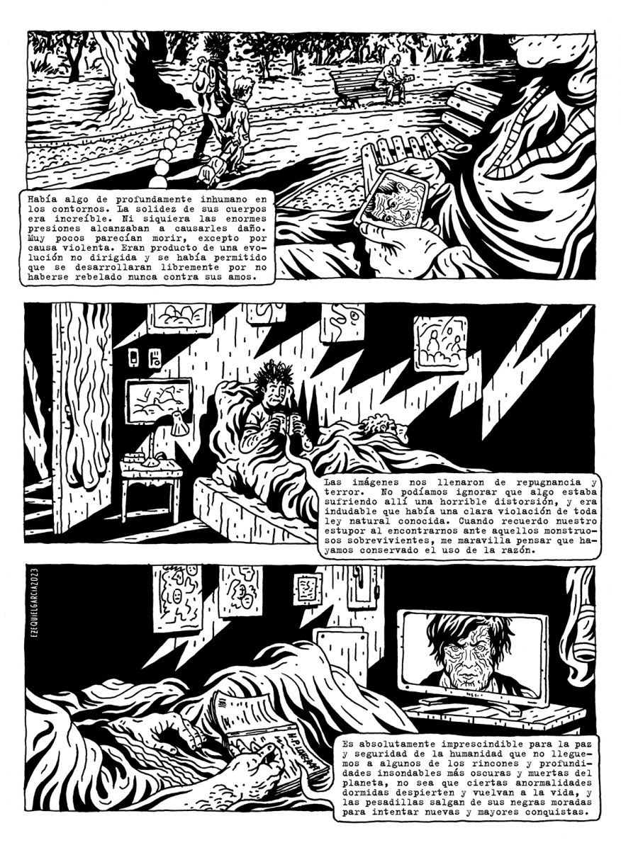Ezequiel García sintoniza con Kalondi y dibuja las partes de este mundo de locuras con retazos de Lovecraft.