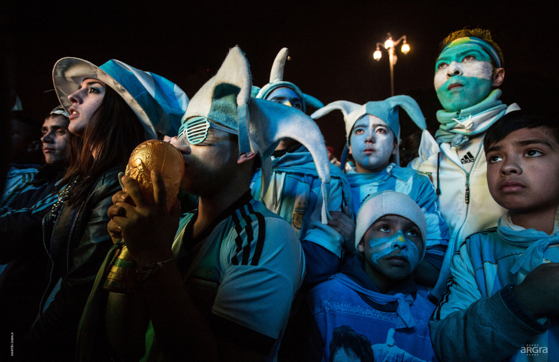 Entre el frío y el hervor, calentando ese pasaje, transcurrieron los partidos de la Selección, y la gran marcha de hinchas nuestros ocupando tierras brasileñas para agitar su fiesta de aliento –ese aire sentido que se le inyecta tanto al agonizante como al victorioso. Partidos y movilización hincha: ambos términos están ligados. Contra la crítica al fútbol como engarce nervioso con algo en lo que no podemos incidir, este Mundial hizo patente la influencia mutua entre hinchas y jugadores, cuyo canto era el mismo: letra-música que subió desde el suelo común de los hinchas en la ciudad futbolizada hasta las tribunas, bajó de ahí a los jugadores, y alcanzó, pantallas mediante, a todos los que no viajaron pero estaban enganchados. Este Mundial era eso: la expansión del fútbol argentino (su hinchamiento), un nosotros de implicancia anímica que afirma desde el arbitrio lo que le tocó (“ser” argentino).