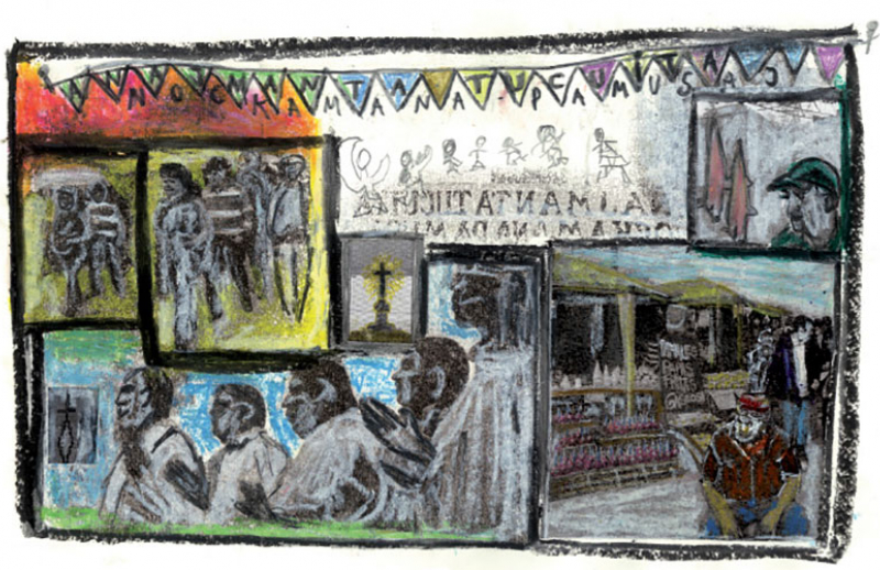 “Para la mayoría de la gente que viene a Mailín, esta es la única experiencia religiosa en el año. No están integrados en parroquias ni van a misa quizás, no tienen otro vínculo con la Iglesia que no sea este”, precisa el cura de la villa. Después postula que la fiesta une a ricos y pobres, gente del campo y de la ciudad, jóvenes y ancianos. “Aquí, no se distinguen las clases sociales”, dice. Pero alcanza con caminar un poco para advertir que la mayoría proviene de las periferias. La imagen es una postal del conurbano bonaerense en medio del monte santiagueño. La circulación es la constante y los peregrinos se mueven en círculos concéntricos que rodean a la plaza principal. Allí, la fricción rige sus movimientos pero se distienden y se dejan ir a medida que se alejan y se internan en ese segundo cordón donde el paisaje del monte ya se impone.