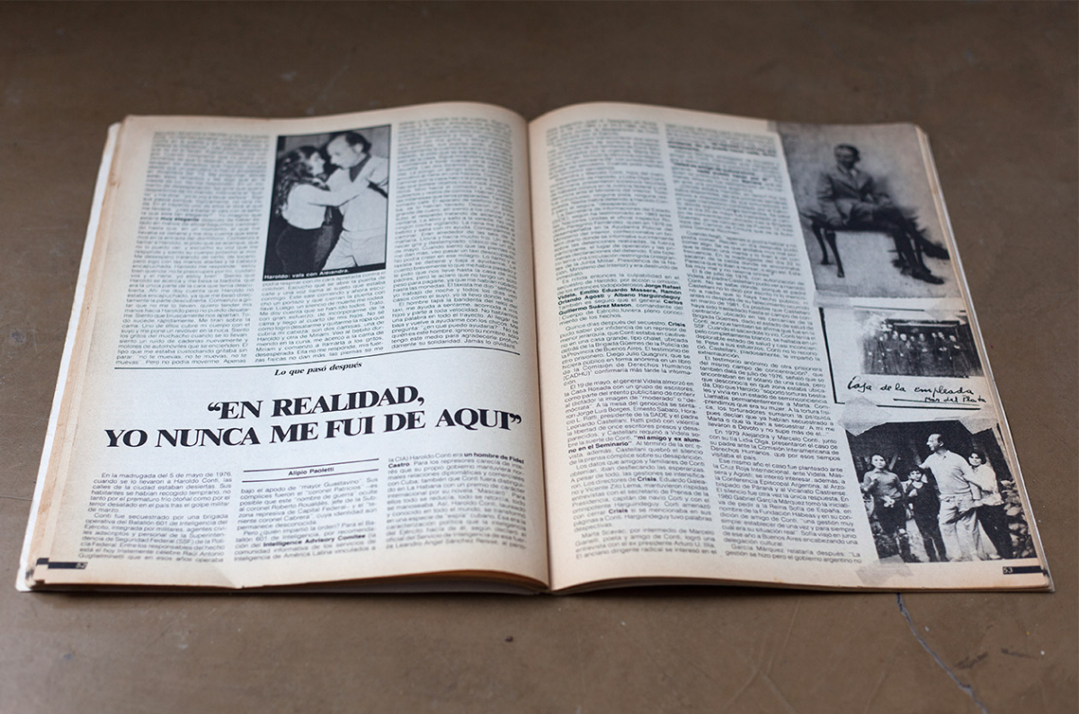 La última actuación burocrática en torno a la desaparición de Haroldo Conti es un certificado expedido el 13 de enero de este año por la Subsecretaría de Derechos Humanos de la Nación. Allí se atestigua que las denuncias referentes a Haroldo Pedro Conti, legajo N°77, oportunamente realizadas ante la CONADEP, “constan en esa dependencia”.