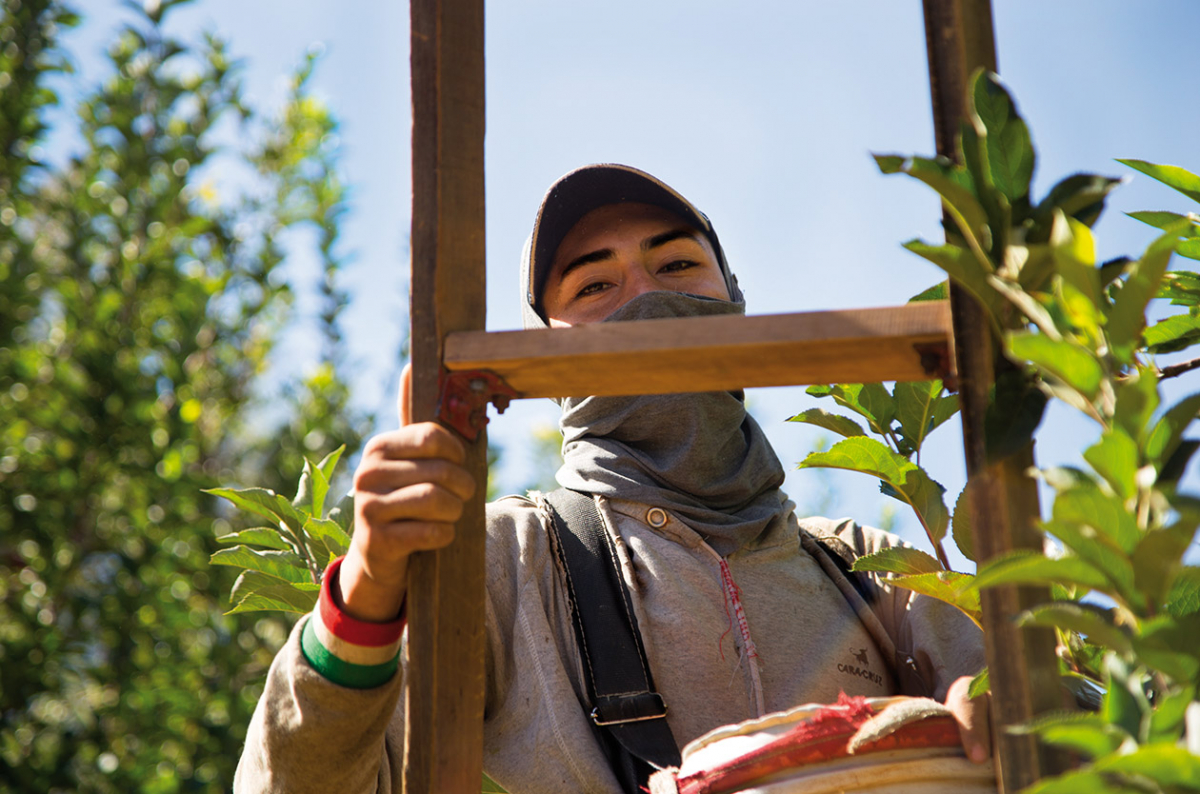 Héctor Riquelme, jefe de producción, nos acompaña por las larguísimas filas de frutales: “En abril, terminar la cosecha. En mayo, podar. Septiembre, defender de la helada, noviembre, ralear, y en enero, empezar a cosechar de vuelta”, repasa. En medio del aséptico monte la tradición irrumpe: aparecen con escaleras y maletas, como hace 60 años, decenas de trabajadores tucumanos y salteños. Sin embargo esta revancha del trabajo manual, pesadilla del capitalismo frutal, no rinde como lo hizo alguna vez para los laburantes.