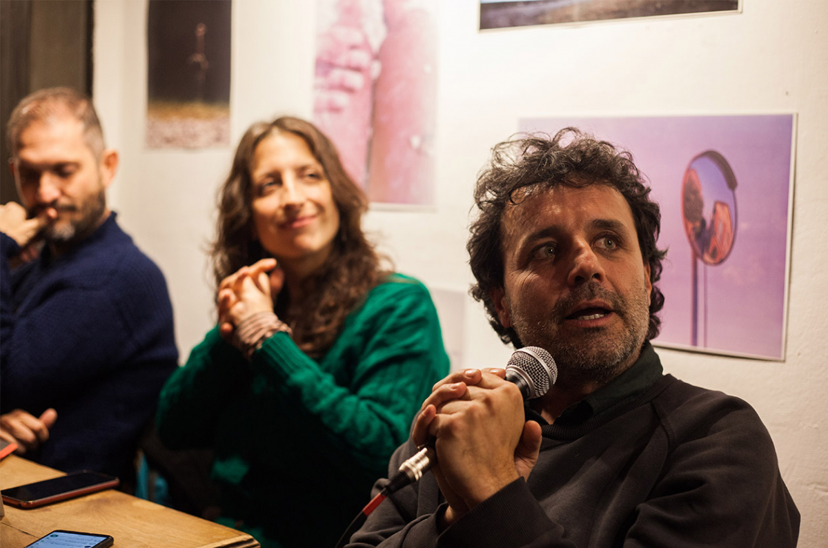 En La Tribu no hay escenario, no hay ceremonial, protocolo ni formalidades. Las mesas están llenas y hay gente sentada en los escalones y de pie en el pasillo, delante de la barra. Jazmín Tesone, editora de fotografías de la revista, inicia la charla y Rodrigo Abd dice cosas: que en Ucrania eran al menos 4 mil les periodistas acreditades, que existe algo que se llama “tour de prensa” organizado por el gobierno de Ucrania, que es difícil tener una visión personal porque no hay acceso libre a los espacios, que –a fin de cuentas– no hay que hacerle caso al fixer. Y habla de otra guerra que subyace a la bélica impiadosa: la guerra por la imagen. Ahí donde todos cuentan lo mismo: ¿Cómo voltear entonces la mirada para mostrar lo que el tour oficial no quieren mostrar? ¿De dónde sacar las fuerzas y la lucidez para desplegar una autocrítica hacia un oficio encorsetado en este mundo ansioso de imágenes en tiempo real?