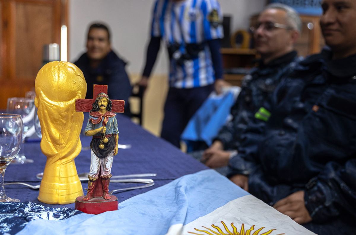 Con el final del partido comienzan las llamadas, los mensajes, las fotos, las múltiples maneras de sortear distancias. En las pantallas de los celulares asoman imágenes de hijos, nietos, amores. Hernán Mazzieri, un suboficial que viajó en la comitiva, cuenta que este es su quinto mundial acá: los otros los vivió en distintas invernadas largas, en 2006, 2010, 2014 y 2018. Durante el partido prometió que, si Argentina ganaba, éste sería su último mundial en la Antártida. “Yo había dejado la puerta abierta porque por ahí me gustaría ir a la base Carlini –dice–, pero Argentina salió campeón, así que no habrá más invernadas largas para mí”. Y cuenta por qué ir tras la hazaña personal del camino antártico tiene sus sacrificios: “Vos como periodista me ves a mí, a mis compañeros, pero no ves a quienes dan el apoyo detrás, las familias que sufren la ausencia allá en el continente. Uno está acá y festeja, pero para festejar acá tuviste que dejar de abrazar a tus seres queridos en ese mismo festejo. Antártida te cambia. Te da y te quita”.
