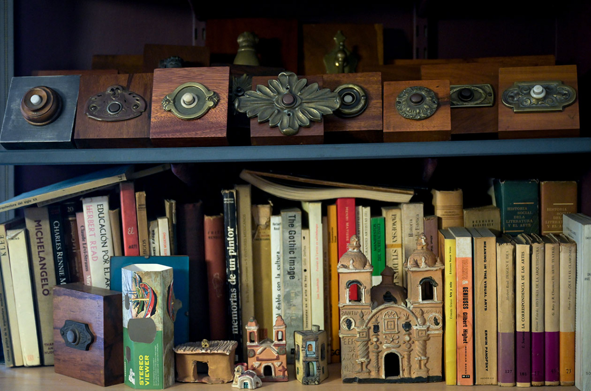 Traducida y traductora, ensayista y ensayada en estudios infinitos de literatura infantil y juvenil, autora de una lista tan grande de libros que podrían medirse con un metro. Historia de un amor exagerado incluye una foto de su archivo: un grupo de niños en un Día de Reyes. “Es una suerte de poder acordarse bien de cómo se sentía una cuando era niña”, escribe en el prólogo. En la imagen, a su lado se ve a un pibito de doce años: es Ricardo Figueiras, con quien se reencontraría mucho después, en la facultad, y con quien tendría hijos, proyectos y juntaría objetos, estos que pueblan ahora este living.
